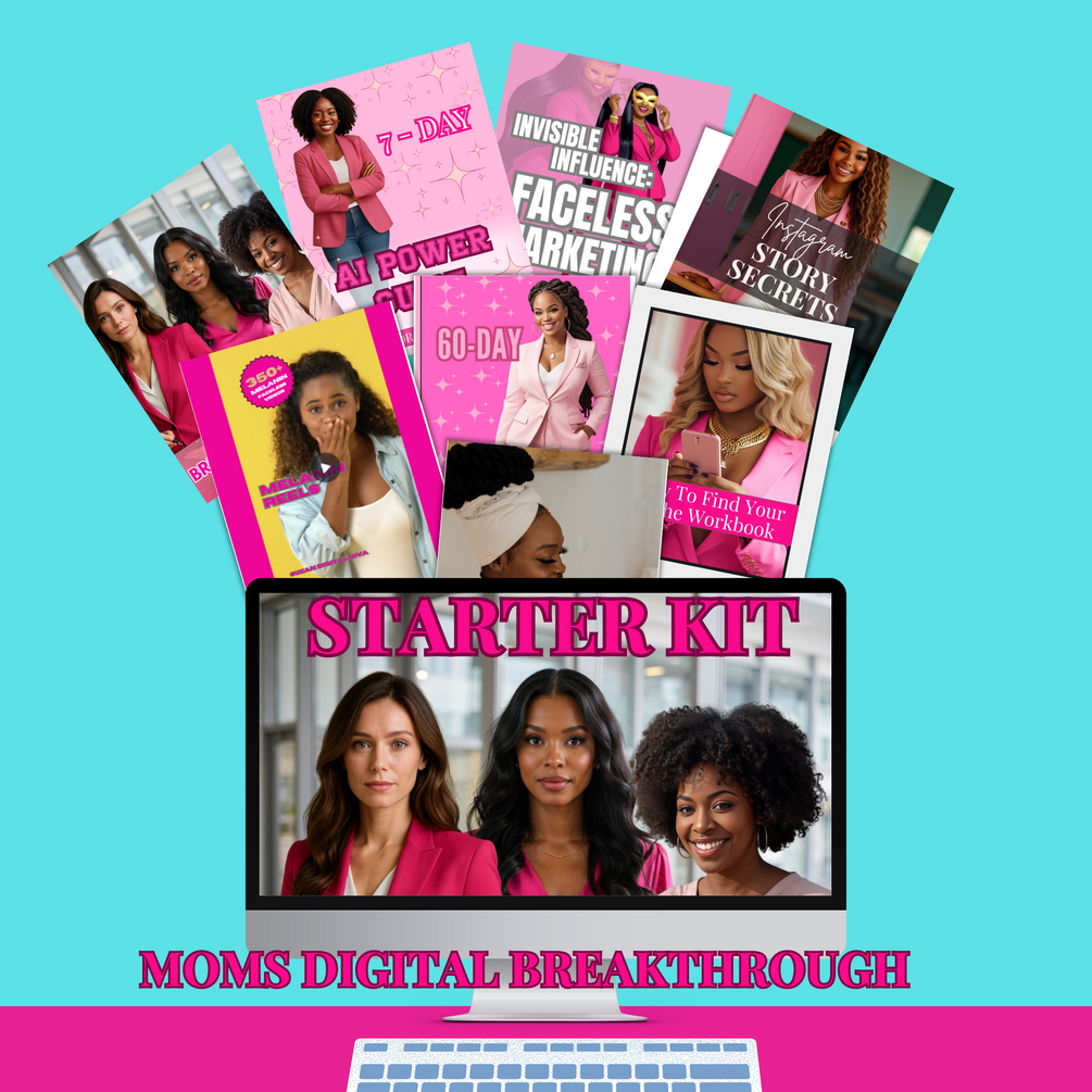 Created for the frustrated moms who are seeking a system that works! Everything you need to start your faceless digital business today! Our Mom's Digital Breakthrough Starter Kit is here to help you turn your passion into profit.